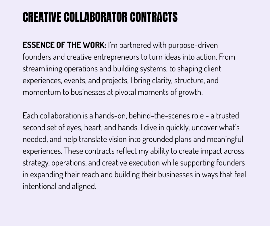 I work best with kind, ambitious founders and creatives who value collaboration, clarity, and building things that feel both well-run and deeply human.